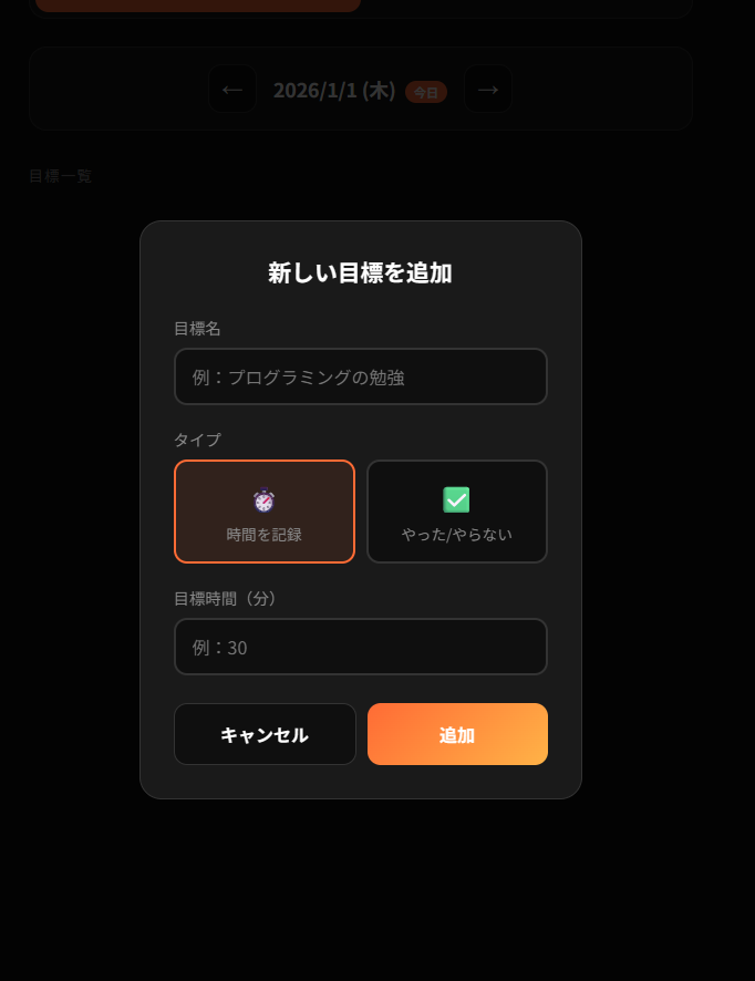 本日は元旦ということで、AI(Cloude)を使って目標達成管理アプリ「Goal Tracker」を作りました。