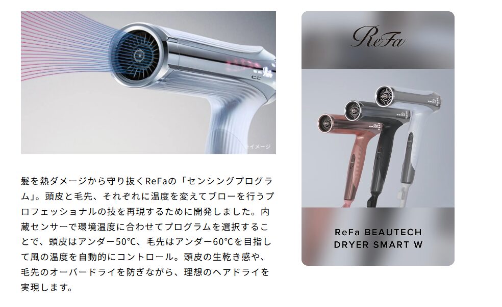 上で書いたように、センシングプログラムという機能が環境温度に応じて風の温度を自動調整し、頭皮はアンダー50℃、毛先はアンダー60℃を目指してコントロールしてくれるらしい。